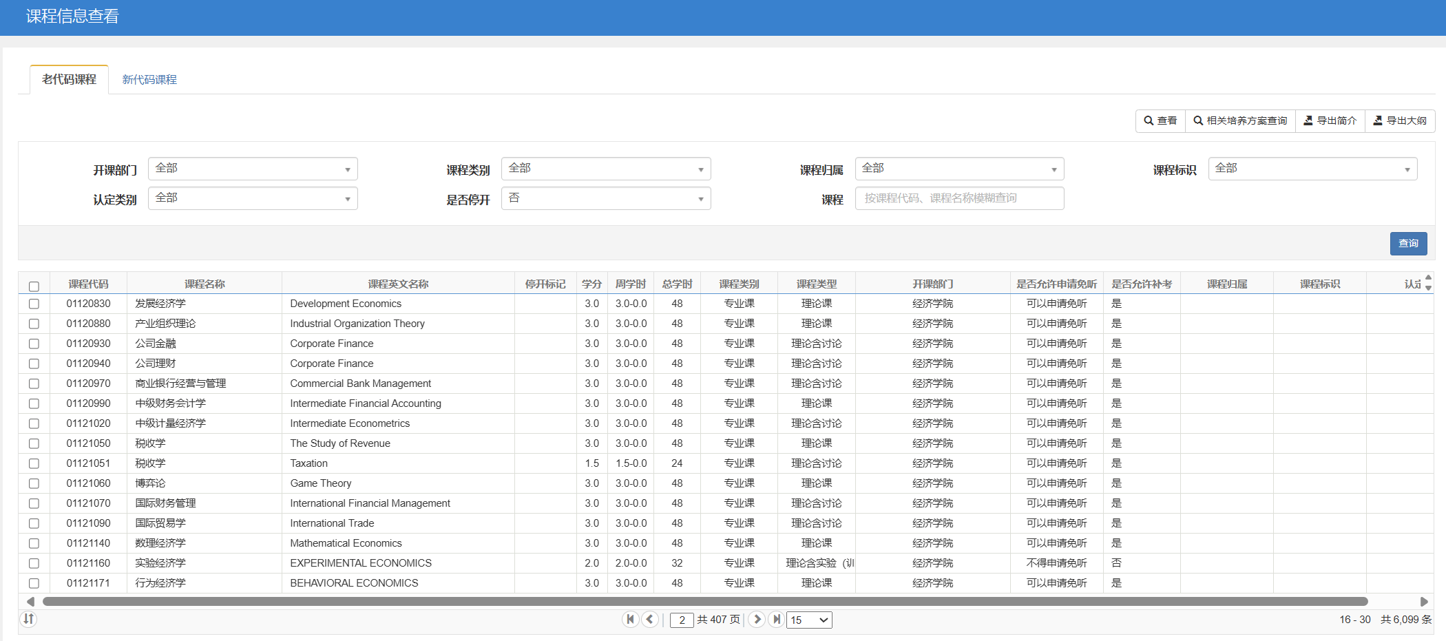 - 本科教学管理信息服务平台—培养方案—课程信息查看:一般离选课尚久的时候就会公布一批,但是后面会撤销,然后在选课前两周左右再开放查询。里面有详细的上课时间地点考试安排以及什么同学对应预置什么老师等。当然感兴趣的话也可以查询历年的看看情况,事实上最早可以追溯到 2002-2003 学年;