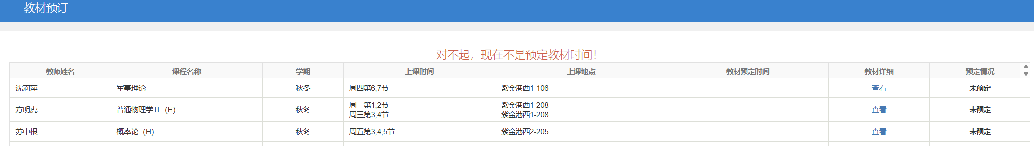 - 通过现代教务管理系统——网上选课——学生选教材查询查看:在选课开始后,如果课程未选中则直接会从这一界面消失,非常刺激: