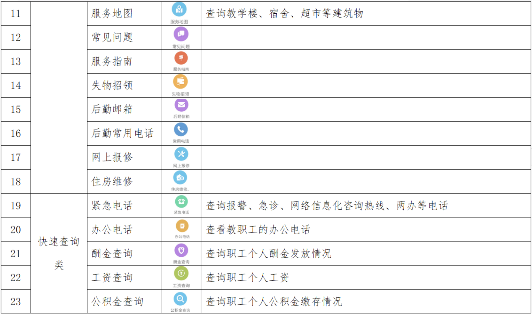 主要功能包括但不限于提供校园公益互助信息发布平台,树洞、吐槽等匿名功能,以及以在校生活、学习为核心的学校信息查询与处理。